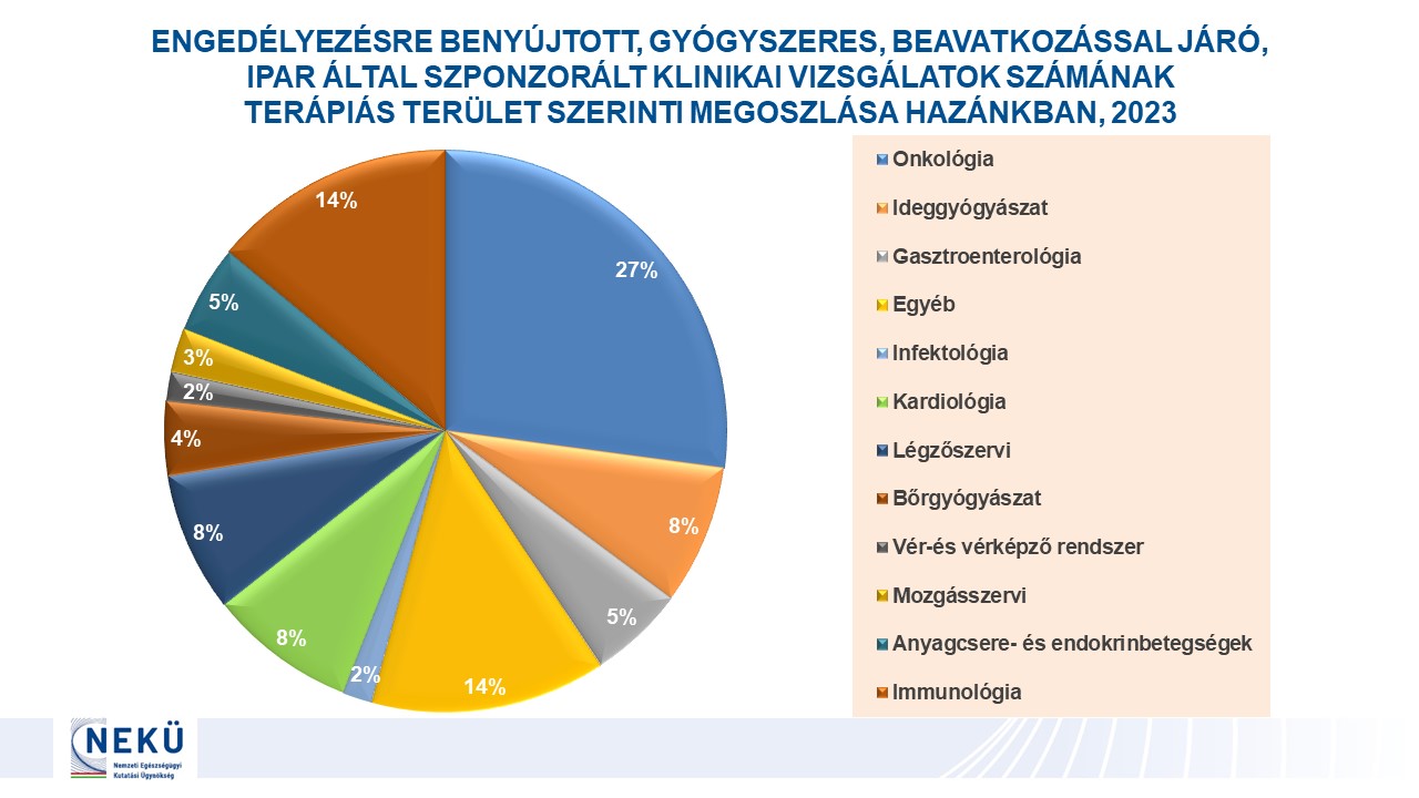- Engedélyezésre benyújtott klinikai vizsgálatok száma Magyarországon terápiás területek szerint 2023