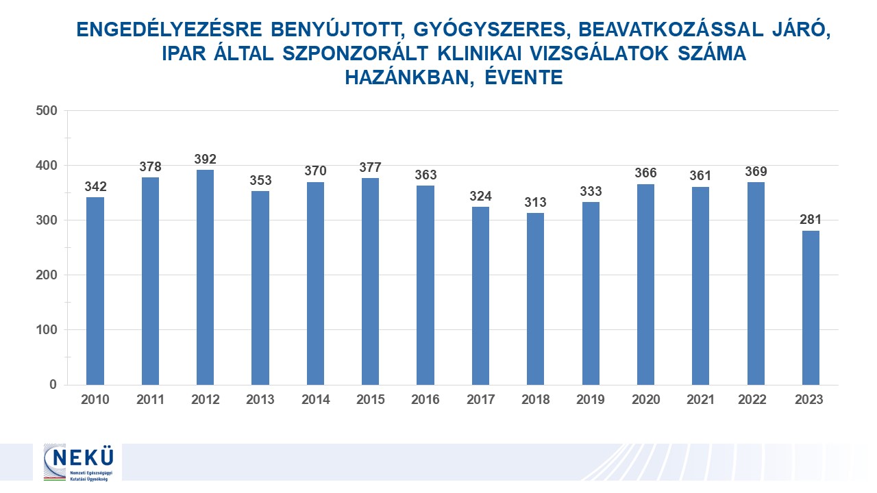 - Engedélyezésre benyújtott klinikai vizsgálatok száma Magyarországon 2010-2023
