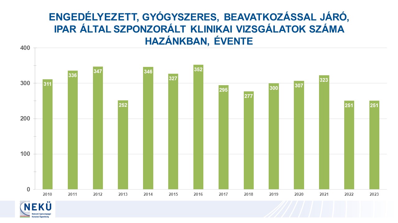 - Engedélyezett klinikai vizsgálatok száma Magyarországon 2010–2023